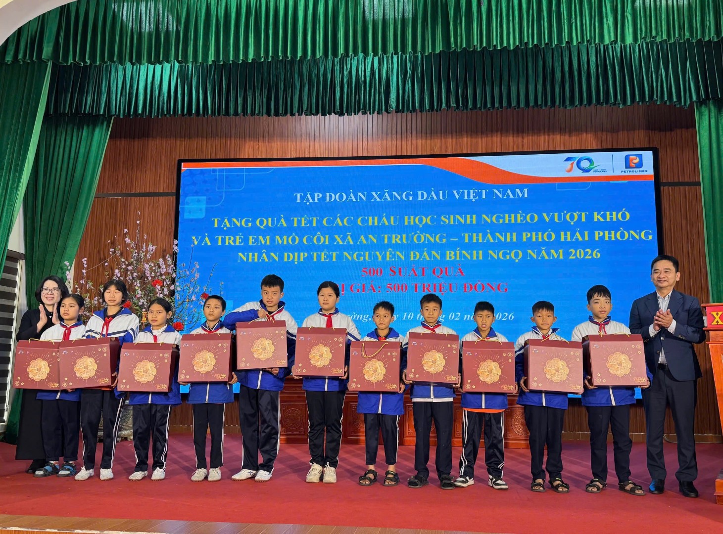 Nhân dịp Xuân Bính Ngọ 2026, phát huy truyền thống “tương thân tương ái” và tinh thần trách nhiệm xã hội của doanh nghiệp, ngày 10/02/2026, thừa ủy quyền của Tập đoàn Petrolimex, đại diện Công ty TNHH MTV Petrolimex Hải Phòng (Petrolimex Hải Phòng) cùng Chi nhánh Petrolimex Hải Dương (CN Hải Dương) đã phối hợp tổ chức trao tặng quà Tết cho các cháu học sinh nghèo, học sinh có hoàn cảnh đặc biệt khó khăn, hộ nghèo tại năm xã/phường: xã Gia Lộc, xã Thanh Hà, xã Đại Sơn, xã An Trường và phường Thành Đông.